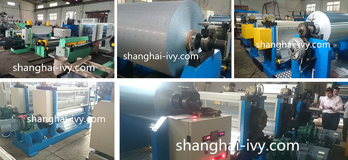 The aluminum foil embossing machine is specially designed for embossing aluminum foil which the thickness is 0.05-0.1mm.Embossed aluminum coil is widely used in refrigerator,freezer,cold storage,interior decoration,roofing ,ceiling,wall decorationand other fields.