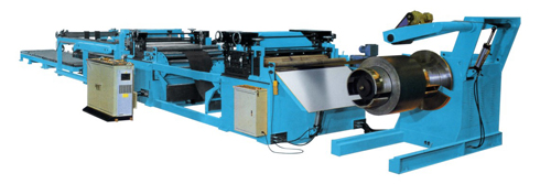 This thin coil cut to length comprised of hydraulic coil-loading car, hydraulic single-spindle uncoiler, hydraulic coil-head-feeding and coil-press device, coil-end straightener, double-roller pinch feeder, central aligner, main leveler, encoding table, shearing machine, roll table conveyor, piling-up racket, lifting table and collecting table, hole accumulator, tensioner, recoiler, coil-discharging car, hydraulic system, electric control system.